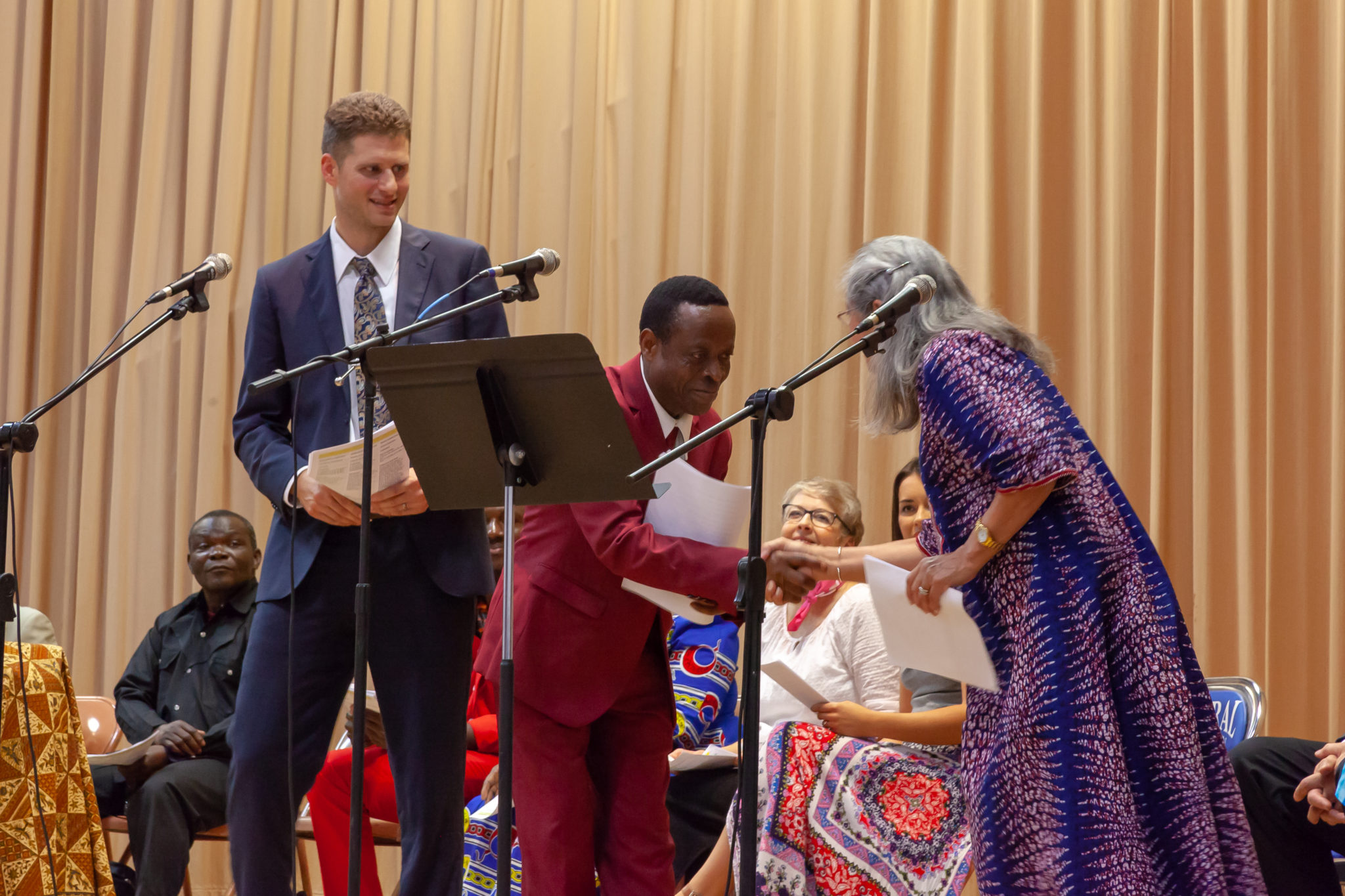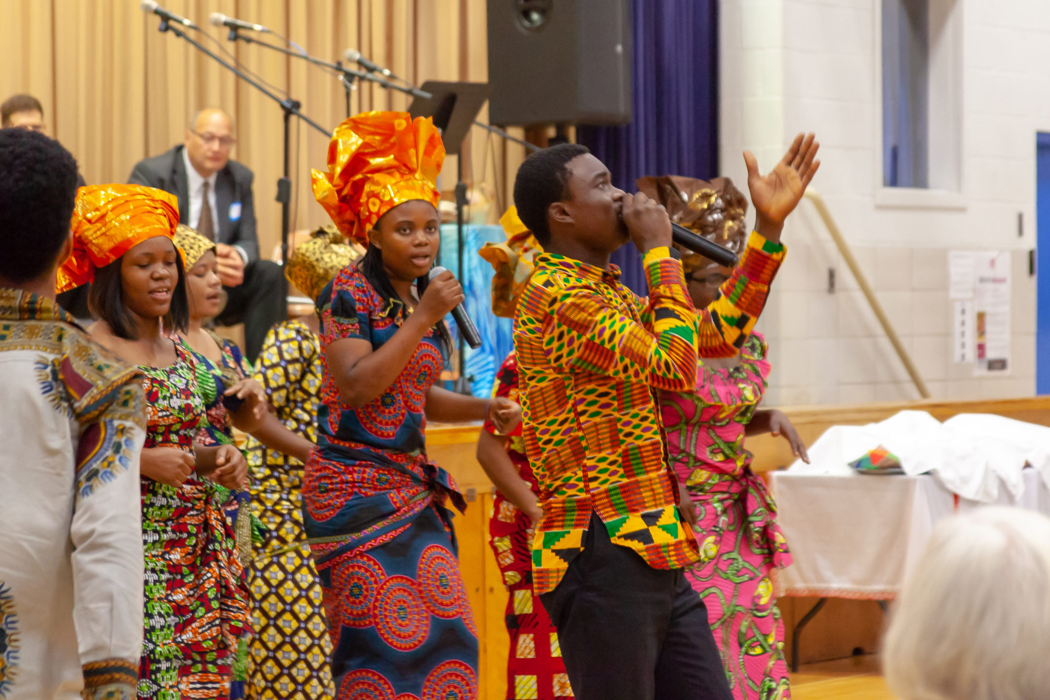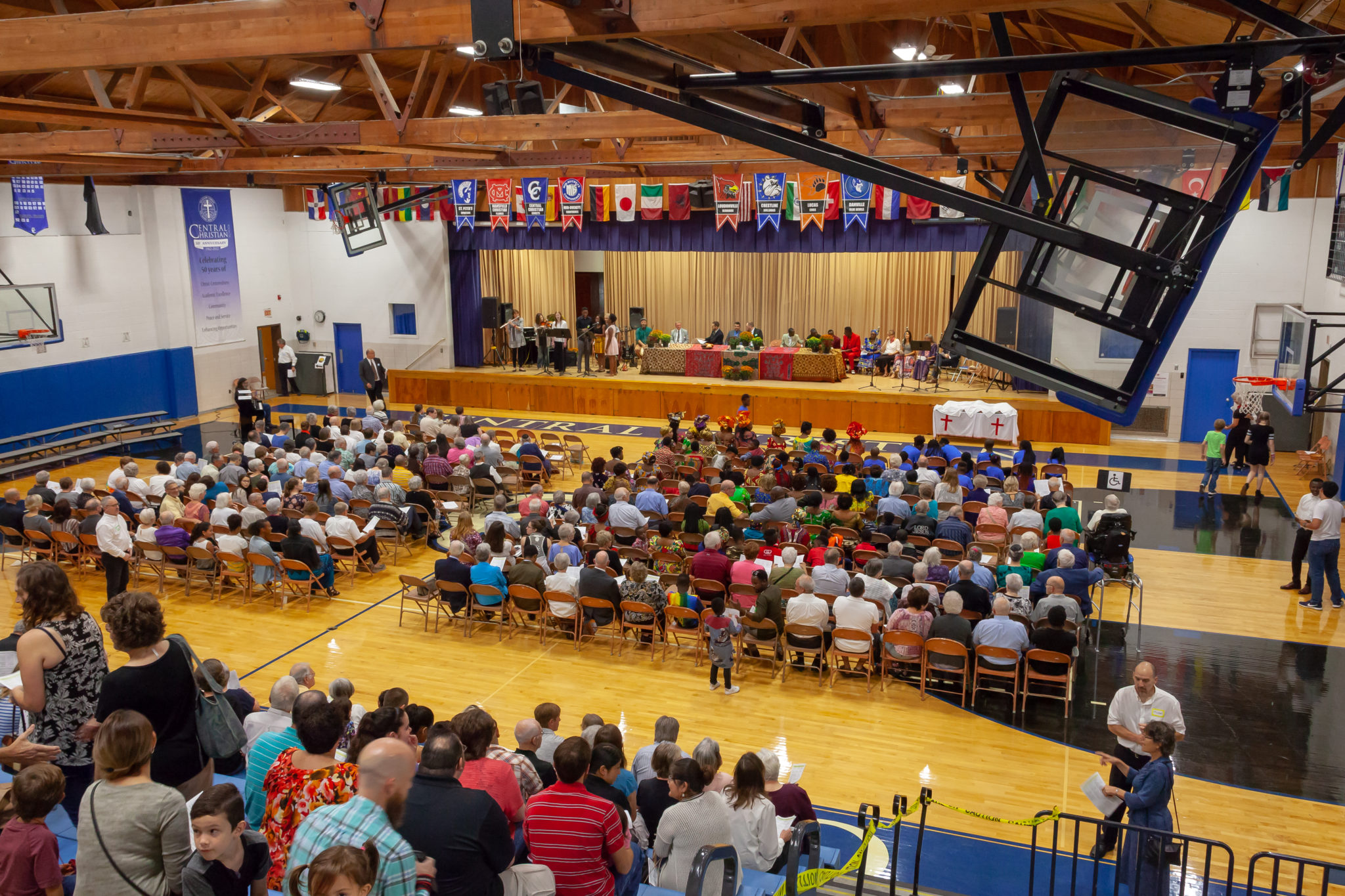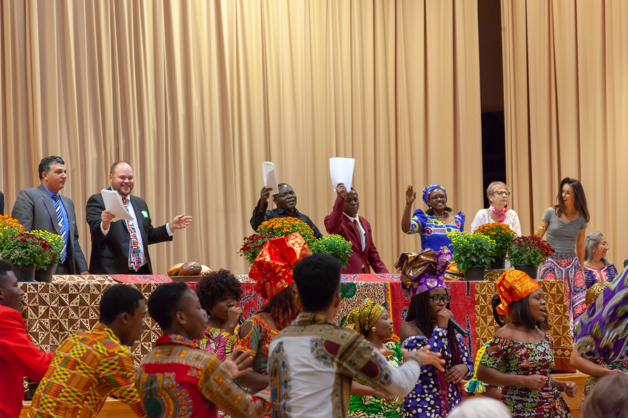 Several Ohio Conference congregations celebrated World Communion Sunday on Oct. 7 with the Akron Swahili Community Church. Central Christian School in Kidron hosted the joint worship service, which was followed by a meal. Photos by Diane Hostetler. For more information about this gathering, see the Daily Record report at http://bit.ly/2018WorldCommunionSunday.
