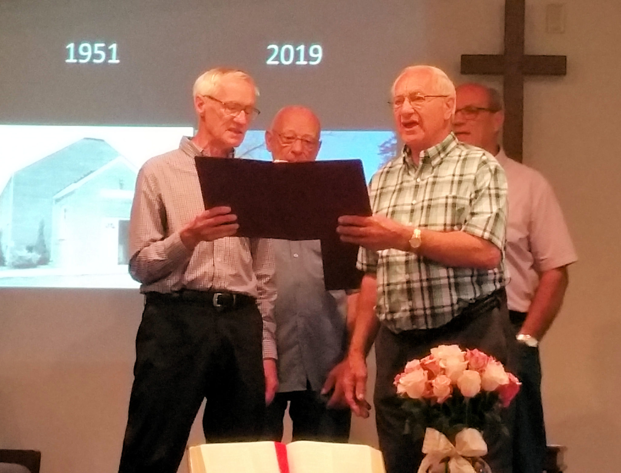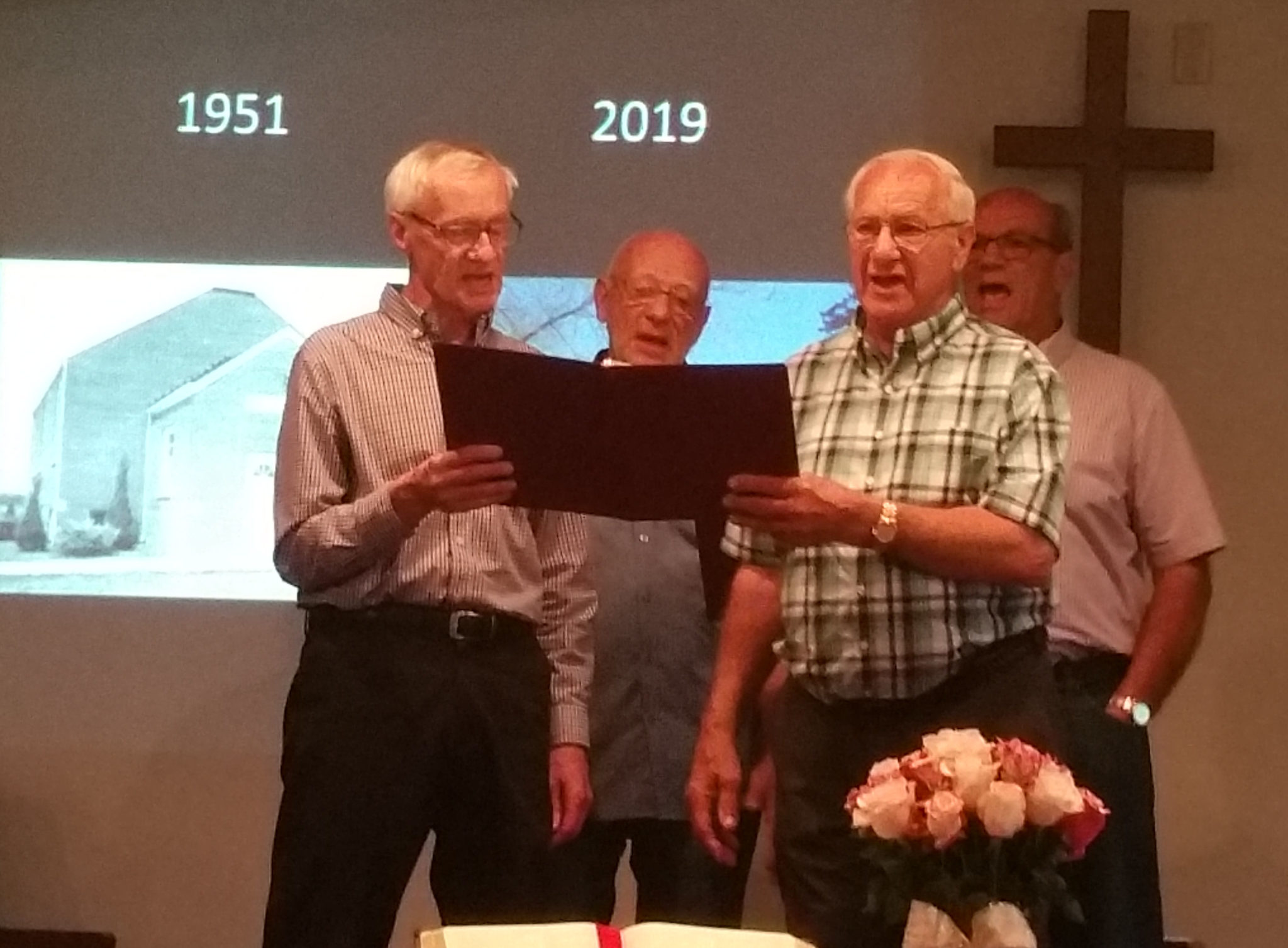 A special treat was the impromptu request for a quartet of “the Schmucker Boys,” who grew up in the congregation and were visiting for the final Sunday, to sing a couple of hymns from the past.