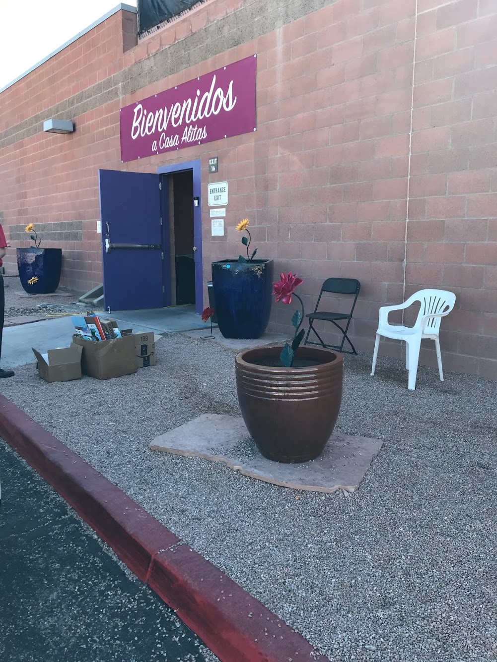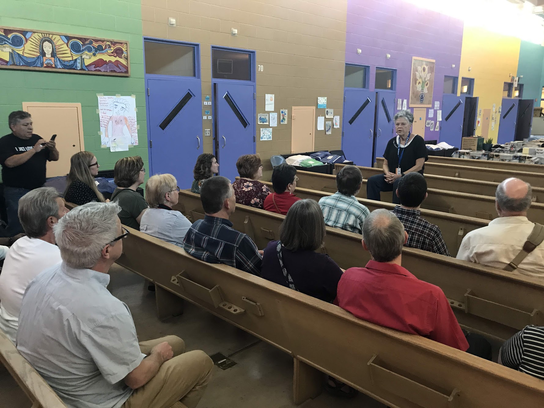 Our first stop was Casa Alitas, a bright, colorful and welcoming shelter sponsored by Catholic Community Services of Southern Arizona. Many of those served at the shelter are parents, children, and pregnant women from Guatemala, Honduras and El Salvador. They have been processed by Immigration and Customs Enforcement (ICE) and granted humanitarian parole, which allows them to stay in the country legally until their asylum request is processed. At the height of the crisis, Casa Alitas was receiving about 240 migrants per day; more recently with the push to keep asylum seekers in Mexico, they have only been offering hospitality to about 30 individuals each day.