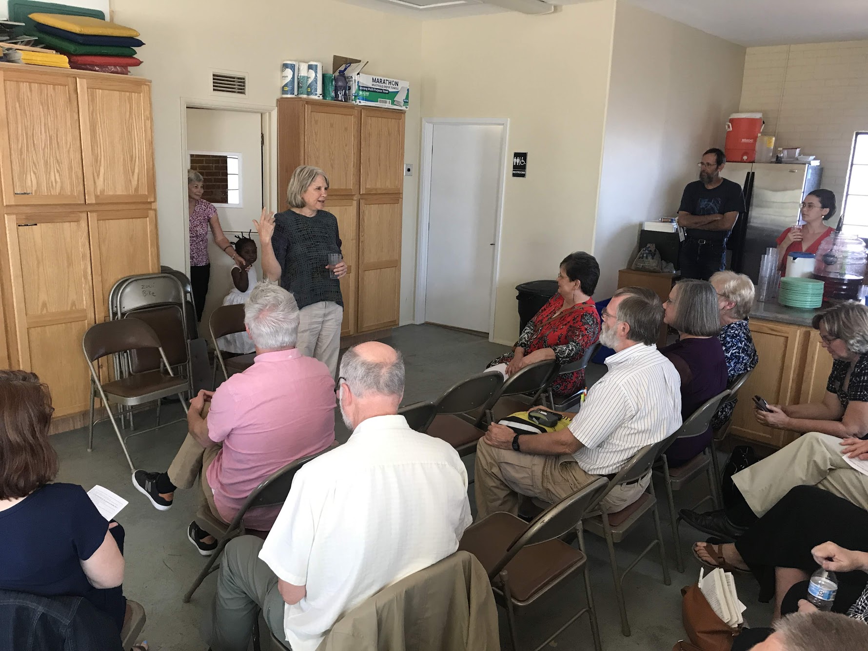 With the aid of an interpreter, we heard the stories of some of the families who were present at the shelter. This included Orlando, his wife, Bethsaida, and their 3-year-old daughter. When they were first asked as to why they had come to the United States from Guatemala, Orlando told us it was to seek a better life. However, as the conversation unfolded, it was clear that a “better life” meant freedom from fear and violence. Orlando said he resisted paying money to the gangs to protect his business, and in retaliation was shot five times. As he was recovering in the hospital, he received a call telling him not to return home. It was then that this young family made the decision to flee for safety, particularly for the sake of their young daughter. Despite these trials, Orlando shared the goodness of God. It is their faith that has sustained them, and they trust God to care for them now. Orlando told us, “The important thing is to give yourself to God.” He went on to say that he wanted people to know that they were not here to do harm, but they only want to work and contribute. We then prayed for this young family, asking God’s blessing and protection as they prepared for life in Nebraska.